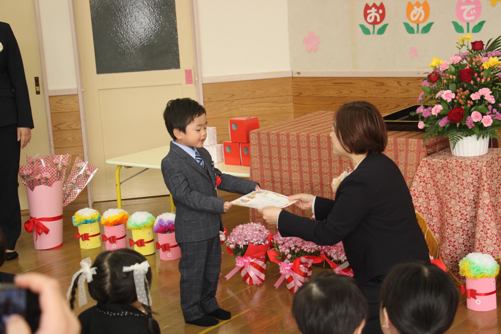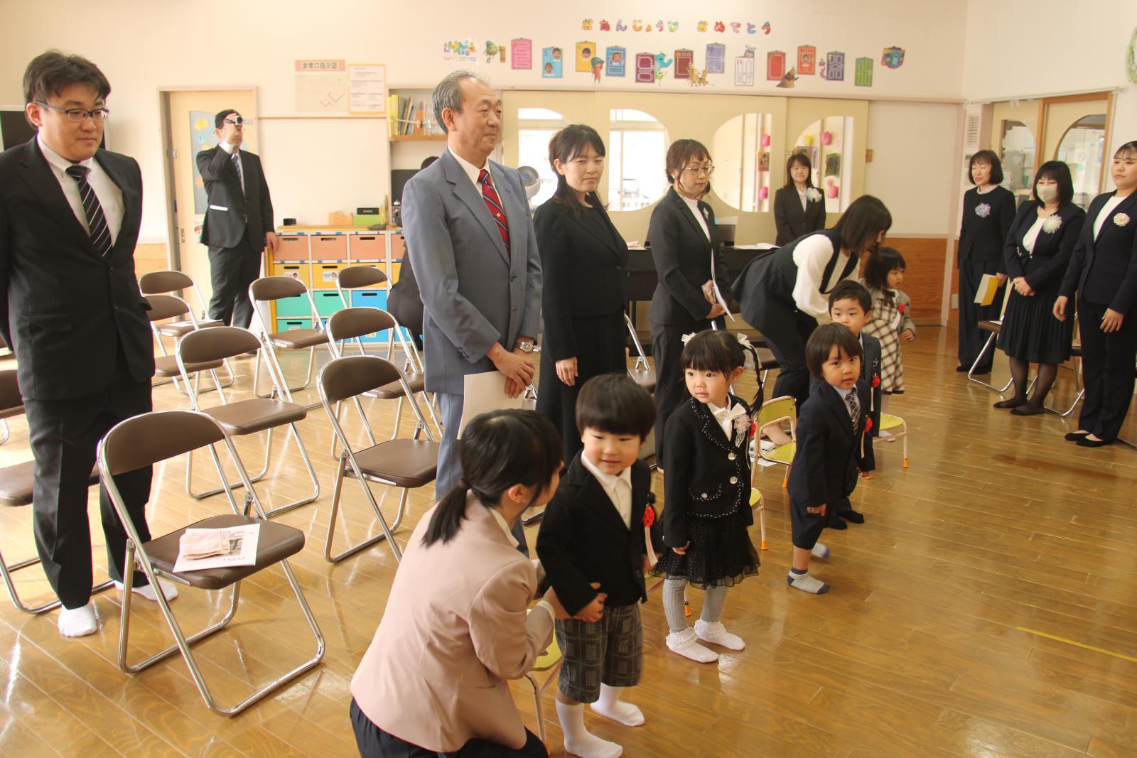 2026.03.28 藤里保育園卒園式 【まちのできごと・みんなのわだい(web版)】 3月28日(土)藤里保育園の卒園式が挙行され、5名の卒園児が保育園と先生方にお別れの挨拶をしました。 卒園児たちは園長先生から修了証書を授与されると、証書を高く掲げて、成長した姿を見せていました。 ページ上部へ