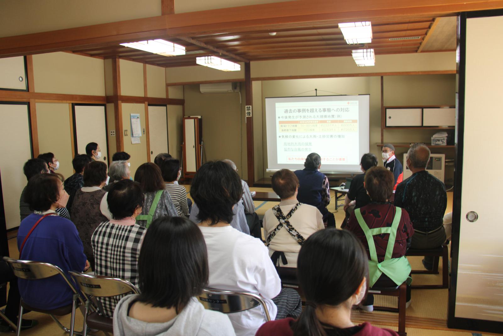 2026.04.17 藤里町社会福祉協議会 防災講座 【まちのできごと・みんなのわだい(web版)】 4月17日(金)、藤里町総合開発センターにおいて、藤里町社会福祉協議会主催の防災講座が開催されました。 当日は、日本赤十字社秋田県支部から講師を招き、社会福祉協議会職員ほか、秋田看護福祉大学、藤琴婦人会、まち自慢クラブの参加者ら約40名が参加して、防災に関する講話を聞いたり、ビニール袋を使った炊飯を実際に体験したりしながら、防災についての理解を深めていました。 ページ上部へ