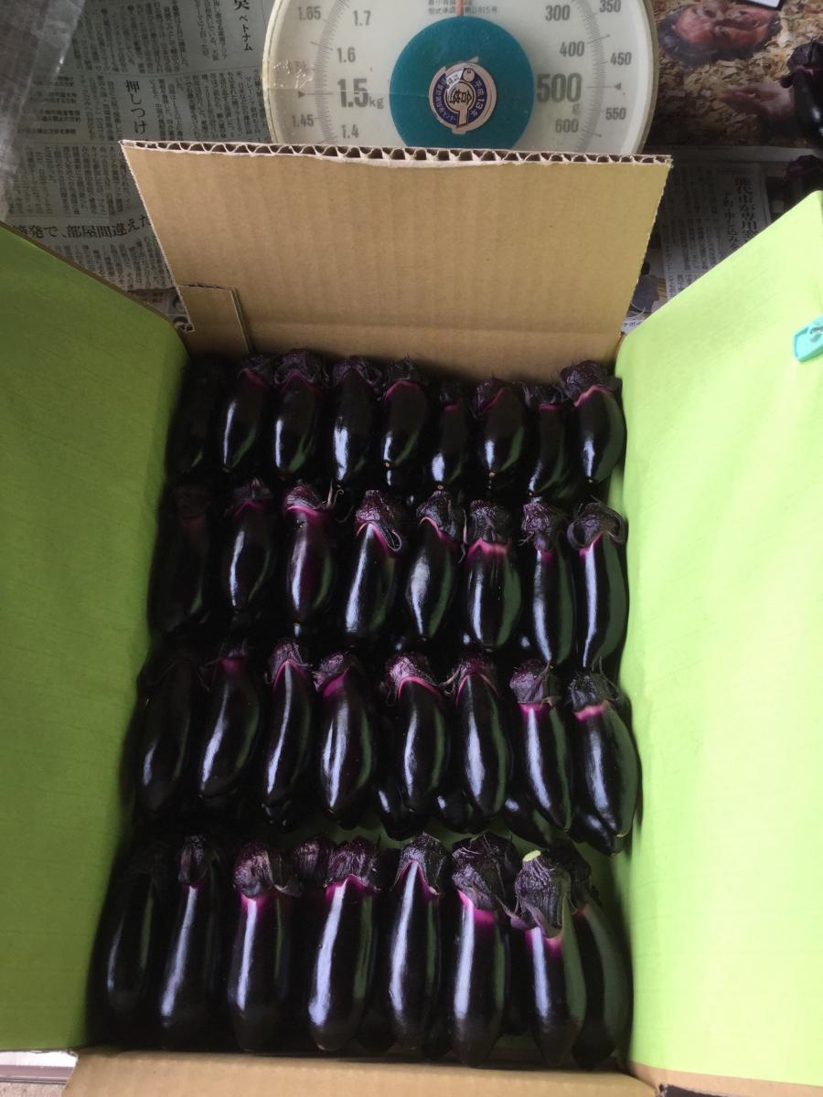 志げ子さんが生産する、箱の中にきれいに収まる艶々の茄子