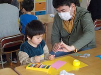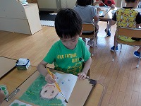 9月12日(金)に祖父母参観日が行われました。おじいさn、おばあさん、お母さんが来るのを楽しみにしており、窓から外を見て待っていた子どもたちです。夏祭りで踊った「やっぱノリノリー!」を元気よく披露しました。その後は保育室へ移動し、手遊び「やきいもグーチーパー」「ひっつきもっつき」「肩たたき」を行いました。製作では、フォトフレームづくりとロケットづくりを行い、集中して取り組みました。