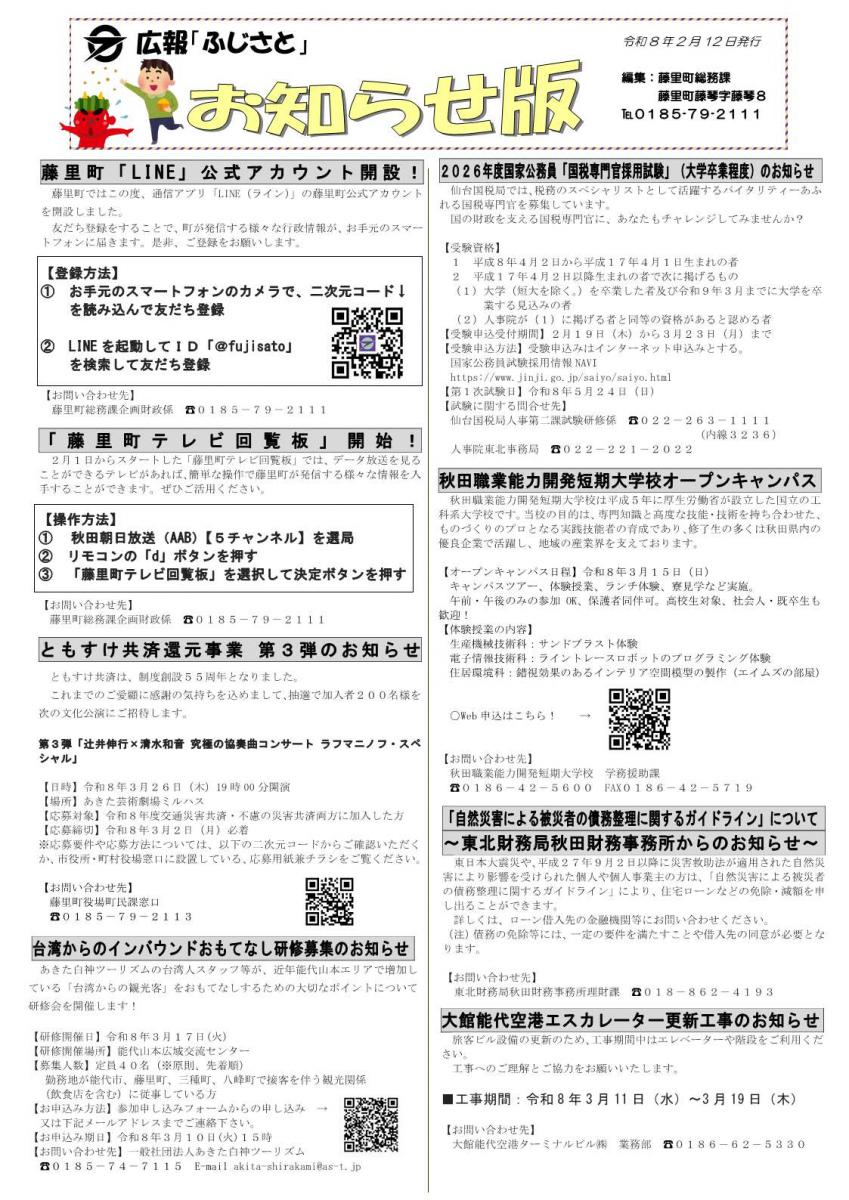 広報「ふじさと」お知らせ版(2026.2.12発行)
